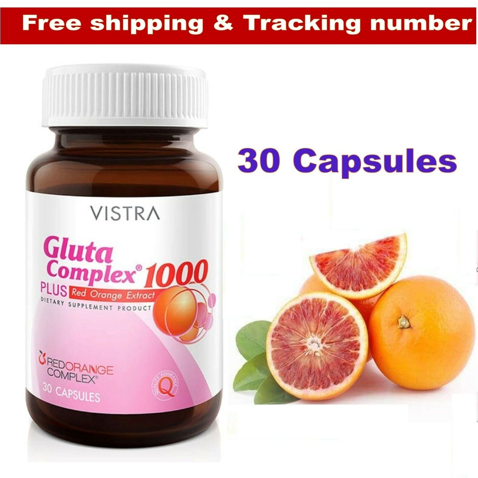 VISTRA Gluta Complex 1000 Plus Red Orange Extract Glutathione 30 Caps