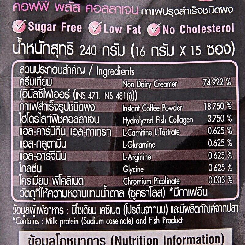 3 x Truslen Coffee Collagen Plus Control Weight Break Down Fat Slimming No Sugar Expedited shipping by DHL express 3-5 business days delivery. **** Excluding Remote Area Surcharge **** Description Condition: New Quantity: 3 Packs / Set Net Weight: 16 g / Sachet Size: 15 sachets / Pack Thai FDA: 10-1-12650-1-0020 100% Authentic Product detail & Benefit Truslen Coffee Plus Collagen Strong flavor coffee Contains collagen extracted from deep-sea fish,Plus Hydrolyzed Fish Collagen, L-Carnitine,L-Glutamine. This helps in the breakdown of excess fat and helps restore and nourish the skin to be more lively Suitable for people who want to control weight and take care of the skin. Properties - Reduce the accumulation and help the breakdown of fat - Revitalize and nourish the skin to be radiant and lively. - Helps to build a firm figure and build muscle mass - no sugar How to eat: Take 1 Sachet per day mix with warm water 120 ml. each morning. Advice: - Can drink 2 small sachets per day for best results, drink 2 sachets per day as normal coffee meals. - 1 sachet provides 60 calories. Ingredients : Non-Dairy Creamer, Coffee Powder, Hydrolyzed Fish Collagen, L-Carnitine L Tartrate Our Policy: Customs Duty fees & Import Taxes: (IMPORTANT, Must Read Before Ordering) # Buyers may need to pay the customs fees & import taxes when your order value is higher than the threshold value of your country. Please check with your country's customs to understand the fee rate before ordering so you can estimate how much you need to pay. # Customs duty fees / import taxes and charges are not included in the product price or shipping cost. These fees are the buyer's responsibility. # The customs fees / taxes are normally collected by the shipping carrier company (DHL) to pay for your country's customs. It is not the additional shipping charge from us or DHL so please don't confuse. # I cannot accept the return shipment because buyers don't want to pay the customs fees / taxes in any case. # Customs duty fees / taxes are the law of your country. No one can have the privilege to avoid these fees. If you don't want to pay these fees / taxes, please don't buy Shipping: # Shipping worldwide from Thailand via DHL Express & take 3-5 business days. (The shipping time may be longer than normal depending on the location of your area, the uncontrollable customs clearance delay, or other uncontrollable events). # We cannot support to ship the item to the remote area in some countries. So, please kindly check your location with DHL Express in your country first if you don't sure you are in the remote area or not. # We will normally ship the item within 3 business days. # For multiple orders, if no other instruction from the buyer, the orders will be combined to ship together in 1 shipment. Return & Refund: # 100% Guarantee. Any issue, please let us know & get full refund in 30 days. # Postage cost is non-refundable. Return postage cost is the buyer's responsibility. Thank you very much. Have a good day.