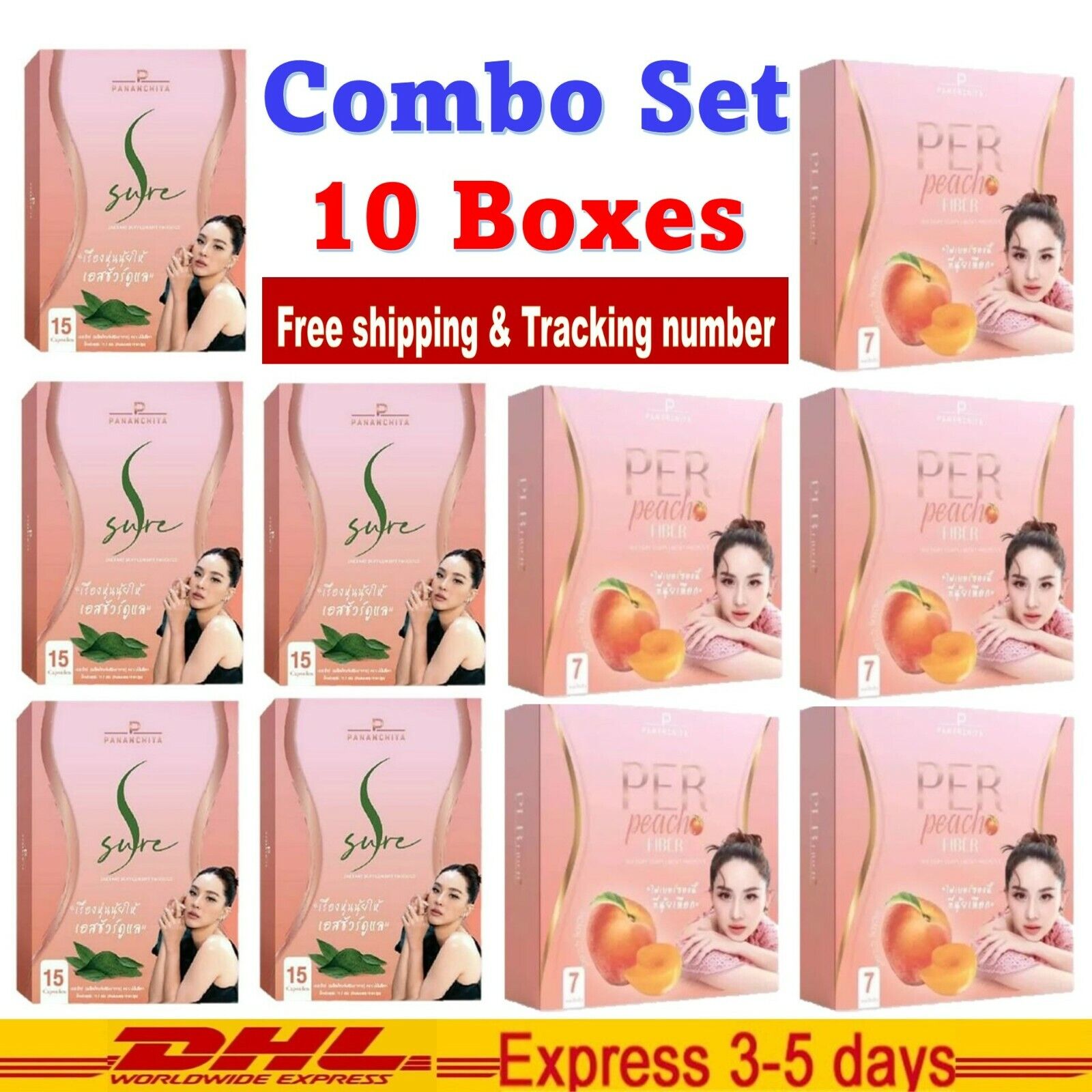 Quantity: 10 Pcs. / Set ( 5 Boxes S-Sure Fast Burn Slimming + 5 Boxes Per Peach Fiber Detox)