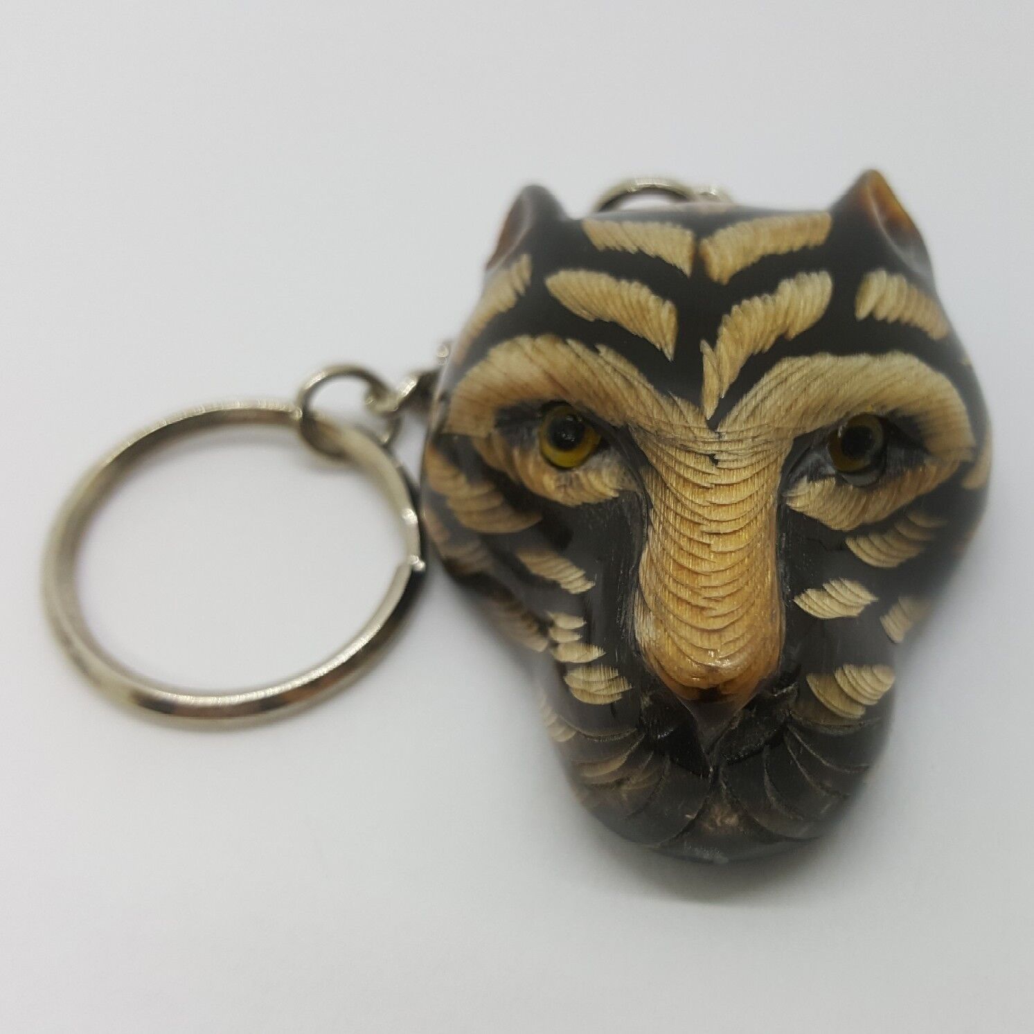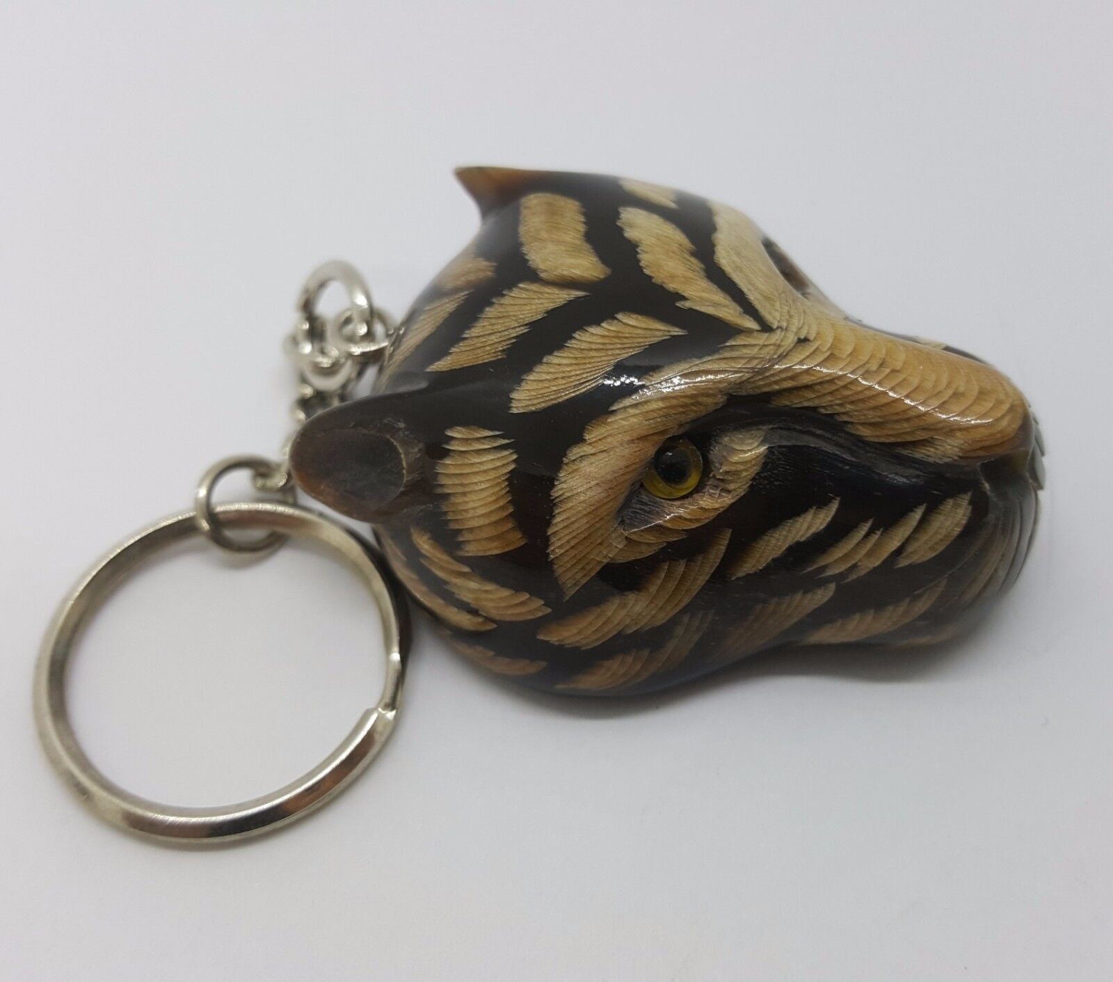 TIGER Keyring Water Buffalo's Horn Carve Figurine Keychain Lucky Talisman (B)