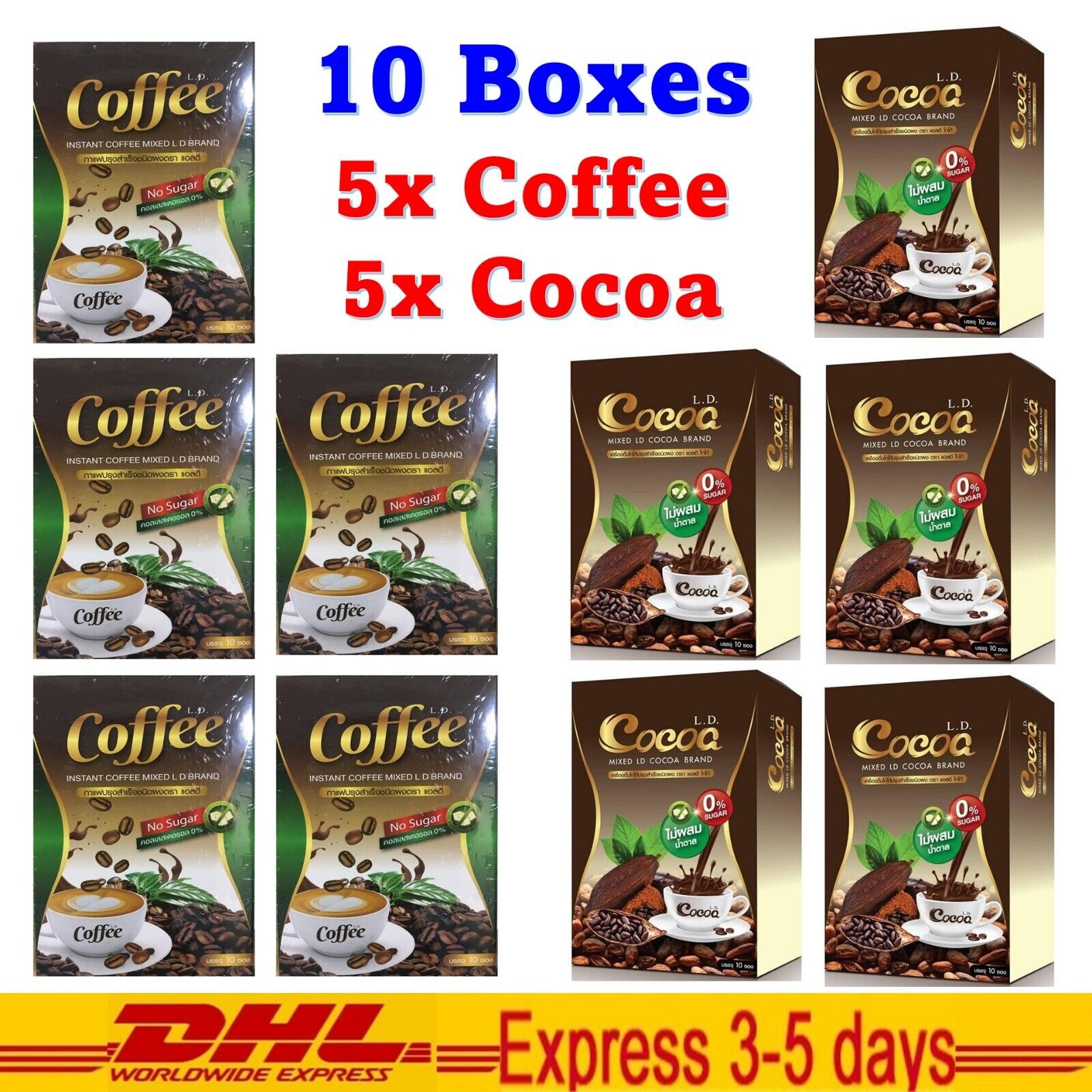 5 LD Cocoa & 5 LD Coffee Drink Weight Management Fiber 0% Fat Sugar 10 Sachets Expedited shipping by DHL express 3-5 business days delivery. **** Excluding Remote Area Surcharge **** Product of Thailand Description Condition: brand New Size: 10 sachets / Box Quantity: 6 Boxes / Set FDA No.: 13-1-21459-2-0006 Product detail LD Cocoa, delicious taste, intense cocoa aroma. But no sugar, reduce appetite, feel full for a long time, speed up metabolism in the body 0% Fat 0% Trans Fat 0% Sugar Feature - Fat free, no cholesterol - Contains dietary fiber to control hunger for up to 8 hours. - Delicious taste, not bitter, easy to eat - Block flour, fat, sugar - Contains white kidney bean extract and cactus - Does not contain sugar Use a sweetener substitute - Can be slim, no yo-yo, no side effects Directions: Take 1 sachet a day by brew with 180 ml of water, 15 minutes before meals. Our Policy: Customs Duty fees & Import Taxes: (IMPORTANT, Must Read Before Ordering) # Buyers may need to pay the customs fees & import taxes when your order value is higher than the threshold value of your country. Please check with your country's customs to understand the fee rate before ordering so you can estimate how much you need to pay. # Customs duty fees / import taxes and charges are not included in the product price or shipping cost. These fees are the buyer's responsibility. # The customs fees / taxes are normally collected by the shipping carrier company (DHL) to pay for your country's customs. It is not the additional shipping charge from us or DHL so please don't confuse. # I cannot accept the return shipment because buyers don't want to pay the customs fees / taxes in any case. # Customs duty fees / taxes are the law of your country. No one can have the privilege to avoid these fees. If you don't want to pay these fees / taxes, please don't buy Shipping: # Shipping worldwide from Thailand via DHL Express & take 3-5 business days. (The shipping time may be longer than normal depending on the location of your area, the uncontrollable customs clearance delay, or other uncontrollable events). # We cannot support to ship the item to the remote area in some countries. So, please kindly check your location with DHL Express in your country first if you don't sure you are in the remote area or not. # We will normally ship the item within 3 business days. # For multiple orders, if no other instruction from the buyer, the orders will be combined to ship together in 1 shipment. Return & Refund: # 100% Guarantee. Any issue, please let us know & get full refund in 30 days. # Postage cost is non-refundable. Return postage cost is the buyer's responsibility. Thank you very much. Have a good day.