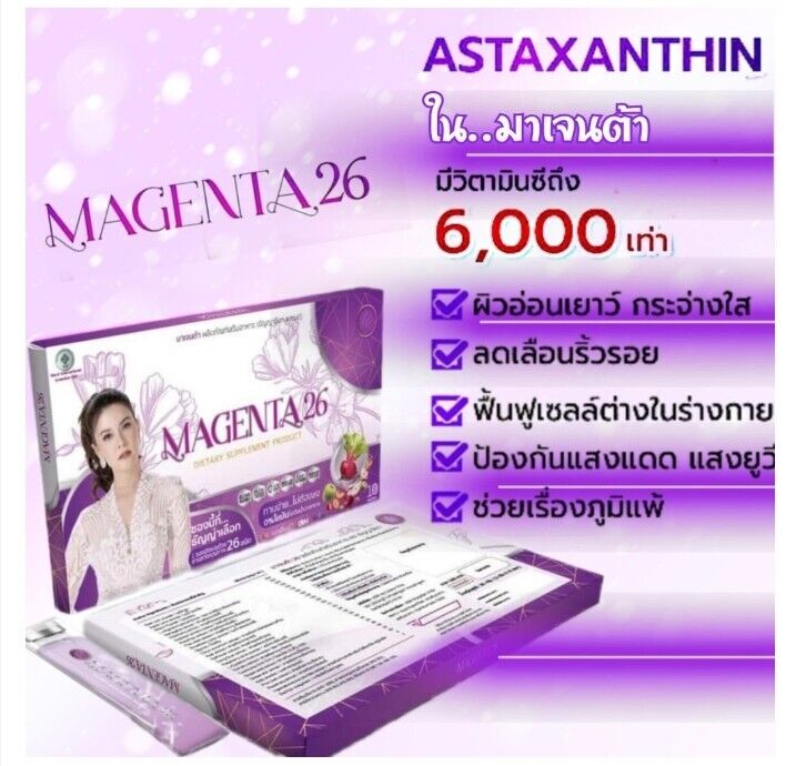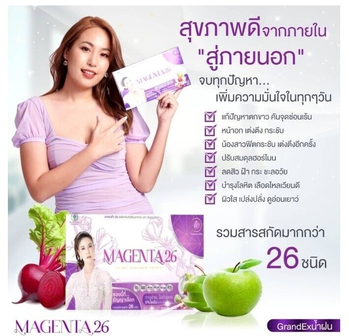 Magenta26 contains 26 quality natural extracts that are extremely powerful in antioxidants. Combined with the innovative FIR, which won the contest from the international invention contest in Korea. To help increase the absorption efficiency even better So the results can be seen clearly
